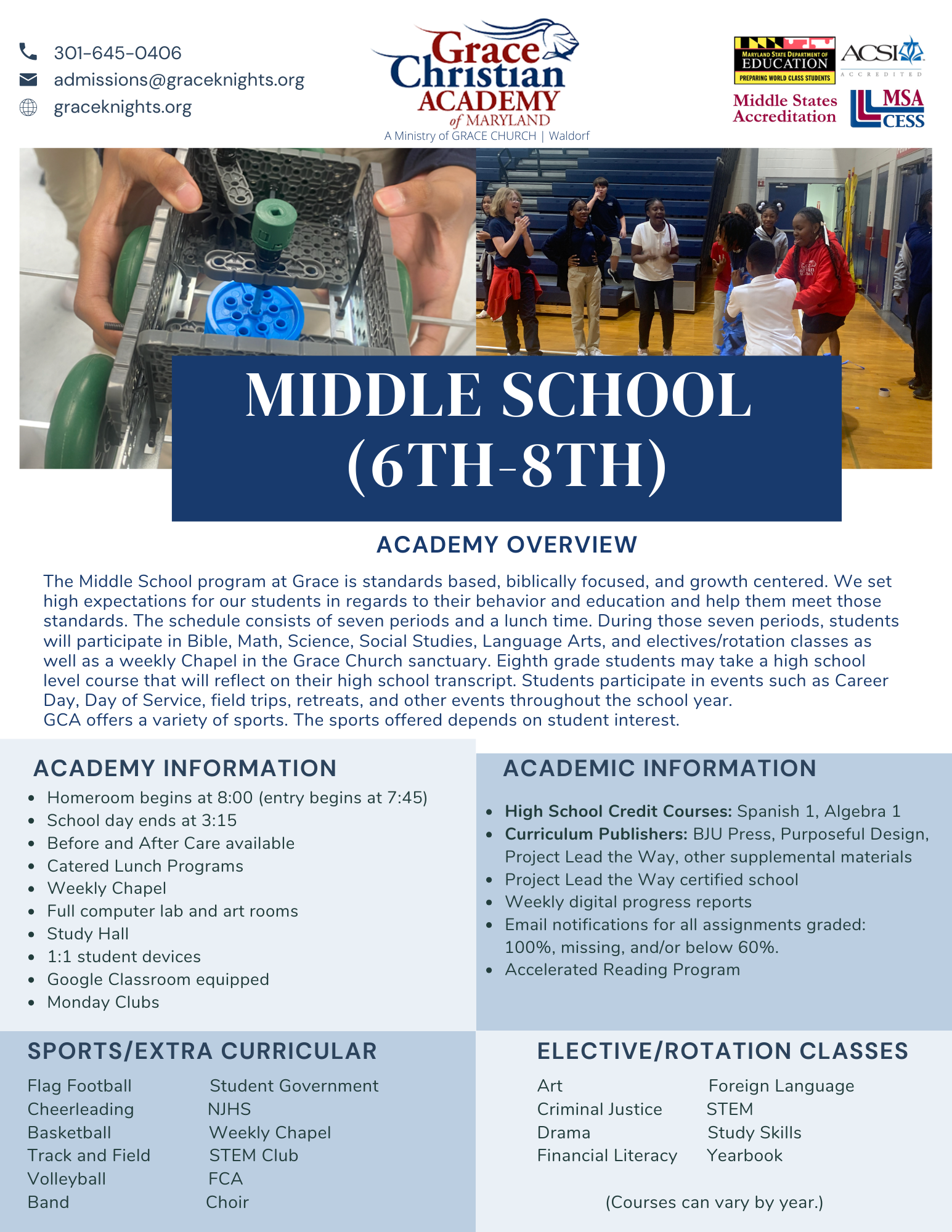 For more information about our Middle School Academy, please view our Parent/Student Manual